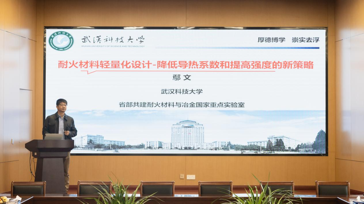 武漢科技大學無機非金屬材料工程系副主任鄢文教授分享了其團隊在“耐火材料輕量化設計-降低導熱系數和提高強度的新策略”的最新研究成果。